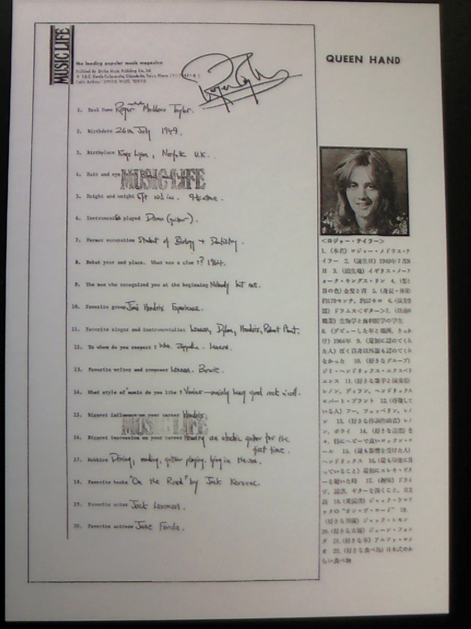 主催がミュージックライフ社です。彼らの自筆アンケート回答(コピー)もしっかりありました。