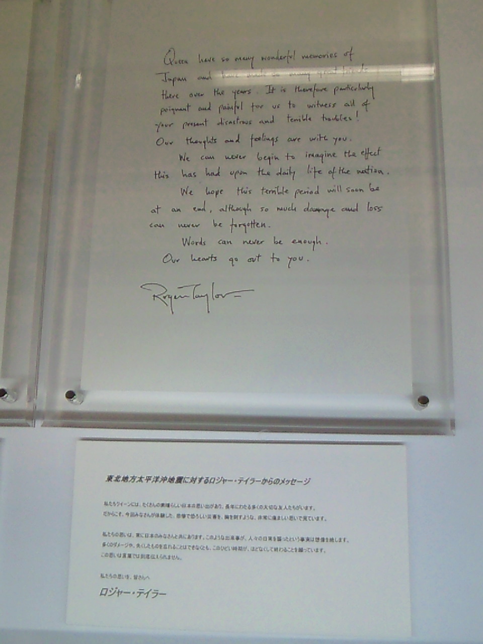 またブライアンとロジャーから、日本の震災についてメッセージが寄せられており、